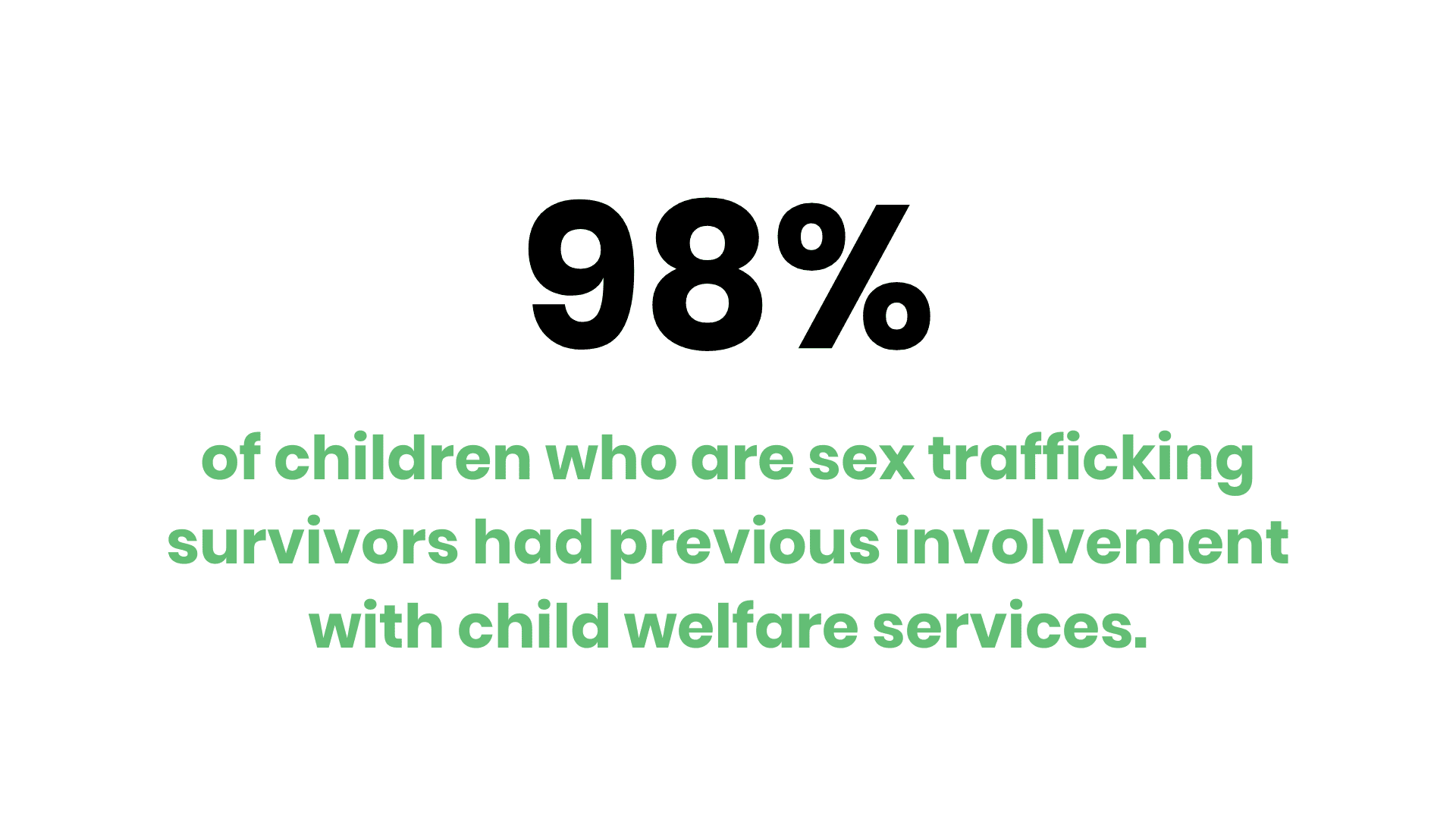 98% of children who are sex trafficking survivors had previous involvement with child welfare services. (OLP Foundation) -